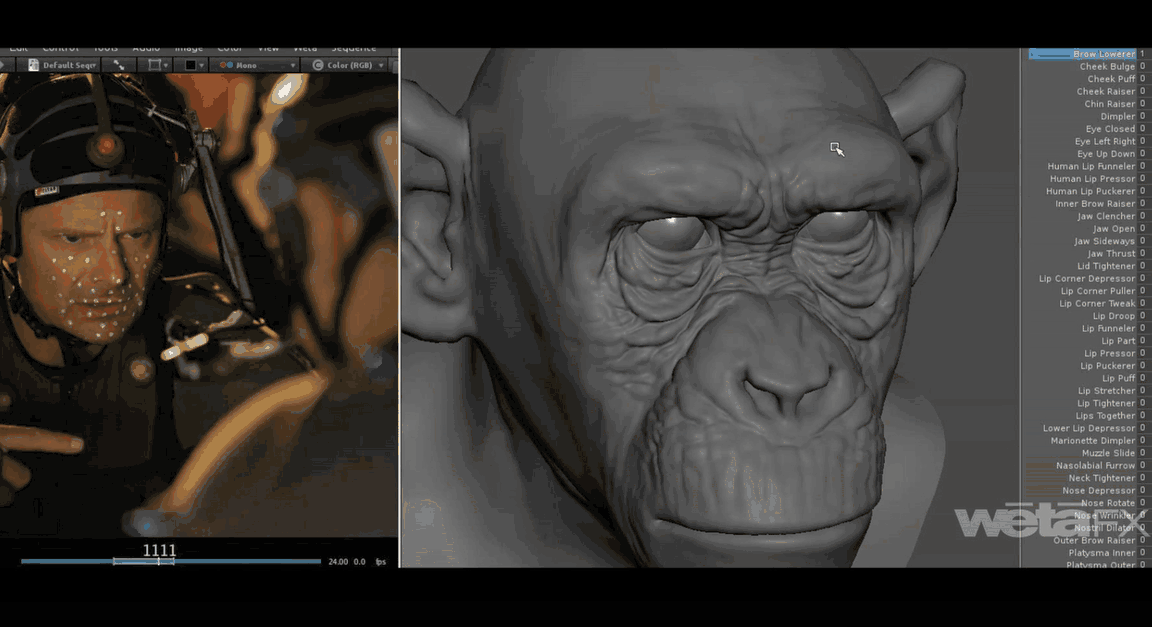 Для анатомической достоверности Weta Digital использовала биомеханический пакет Tissue, симулировавший реальное поведение мышечных волокон и подкожных тканей шимпанзе.