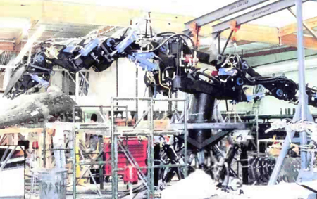 Таким образом, для движений динозавра создали полностью механический «скелет». И при помощи его управляли реалистичными движениями огромного тираннозавра.