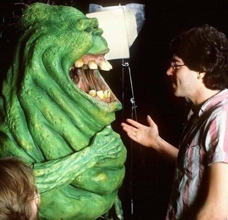В оригинальной ленте 1984 года призрак по имени Лизун был реализован с помощью сложной аниматронной системы. Первоначальный дизайн-макет, созданный художником Томом Энрикезом, был доработан Стивом Джонсоном. Итоговый образ сознательно избегал канонического облика призрака, приобретя черты гротескного, но харизматичного существа.