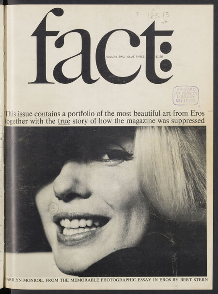 В 1964 году происходит характерный для Гинзбурга поворот. Менее чем год спустя после получения пятилетнего приговора за публикационные нарушения он не отступает и не уходит в тень. Вместо этого — параллельно с юридической апелляцией — запускает новый, сознательно провокационный журнал. Он называет его fact: и вновь приглашает Герба Любалина, с которым ранее работал над Eros, занять позицию арт-директора.