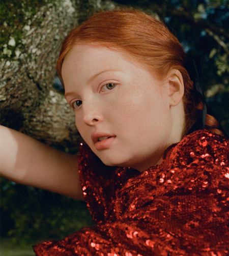 Софи Тернер, с её рыжими волосами и аристократичными чертами, неоднократно становилась объектом прерафаэлитских стилизаций. В фотосессиях для глянцевых изданий её фигура часто помещается в природные декорации — среди цветов, воды, в лесу. Длинные распущенные волосы, струящиеся ткани, задумчивое выражение лица — всё это отсылает к образам «Леди Шалотт» или «Благовещения» Россетти. Фигура здесь — не просто тело, а символ романтической героини.