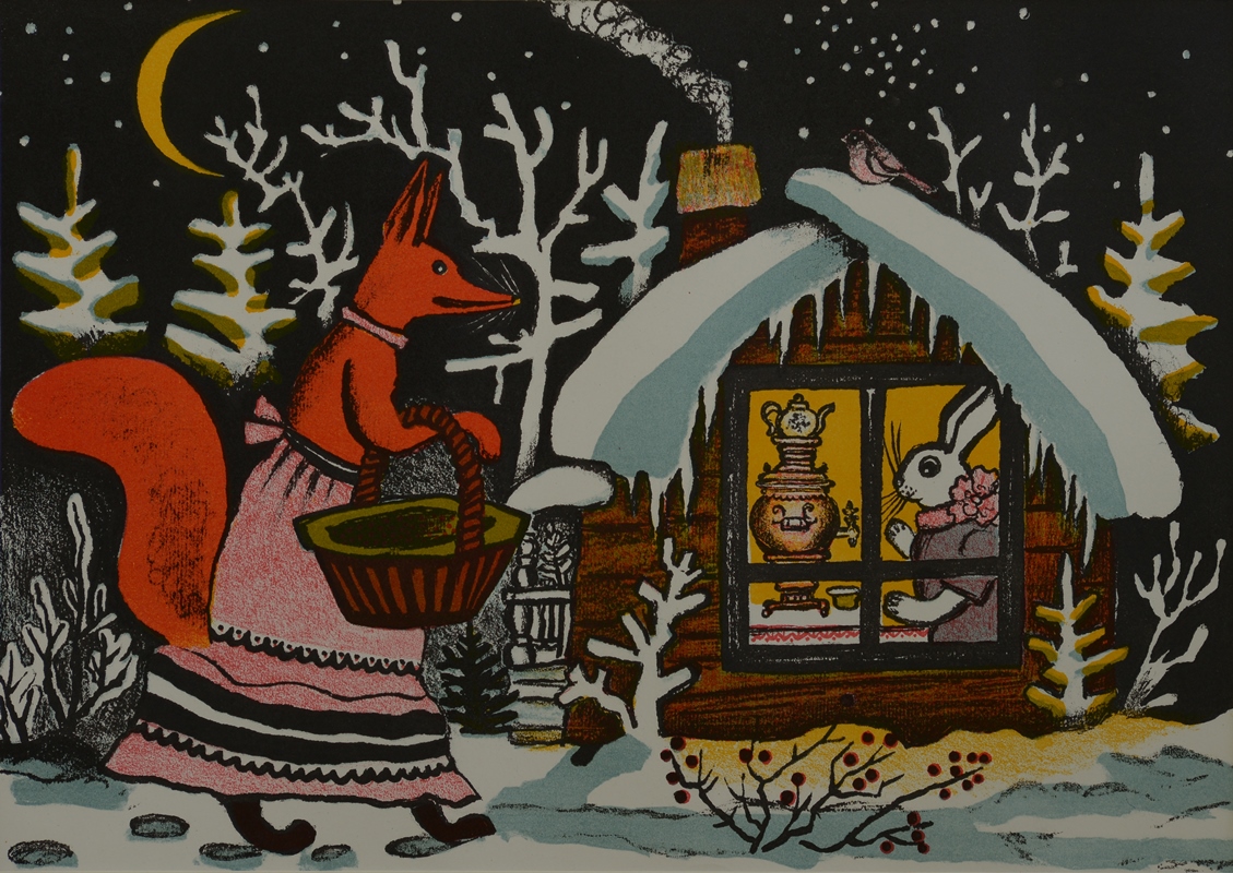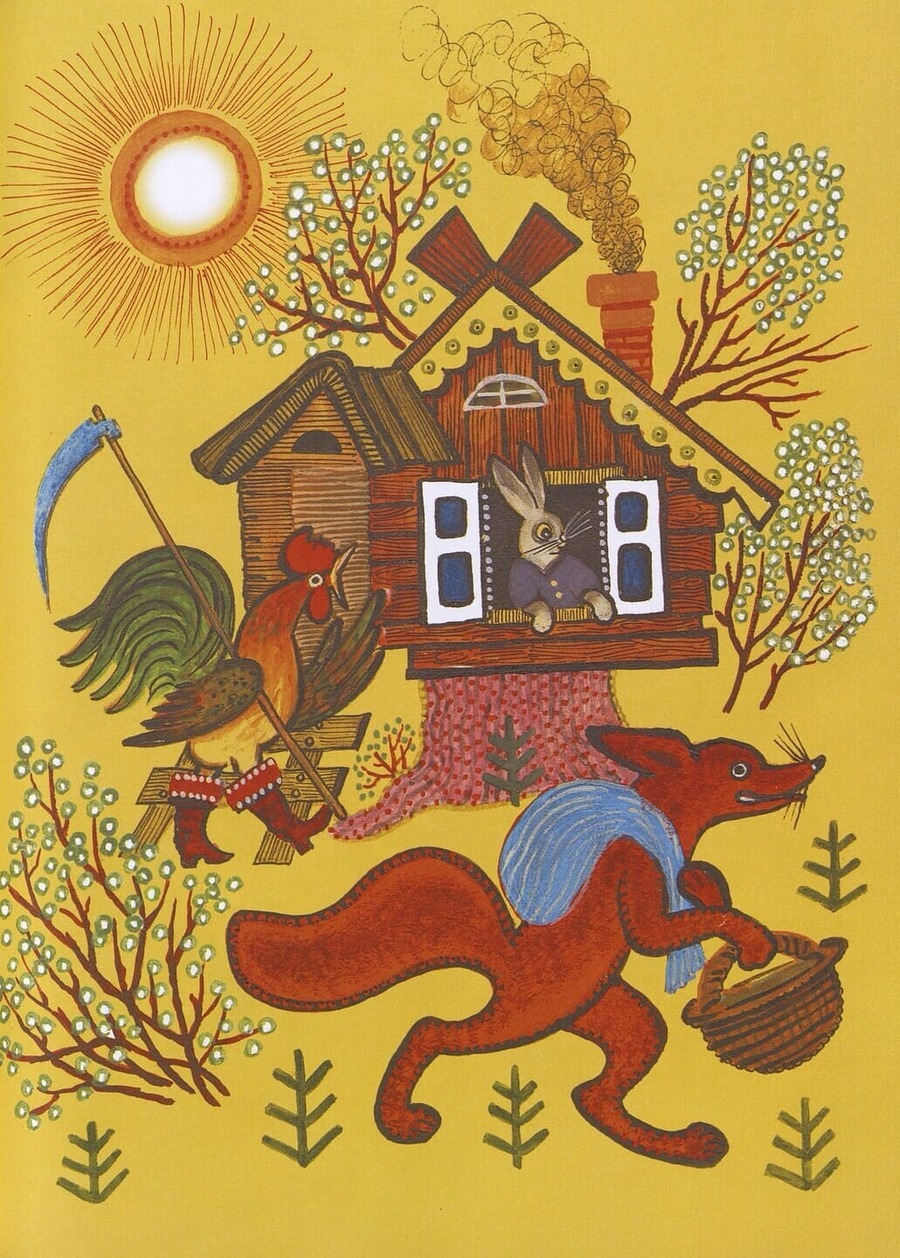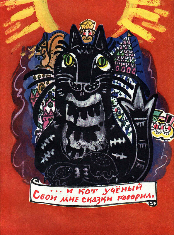Юрий Васнецов также использовал мотивы лубка и но с большим количеством декоративных деталей мельчайших подробностей: вокруг главных героев: котов, зверей, народных персонажей, располагаются элементы, похожие на роспись, вышивку или расписные игрушки. Его персонажи Персонажи изображены с нежностью, юмором и индивидуальностью: они живые и «человечные» по характеру.