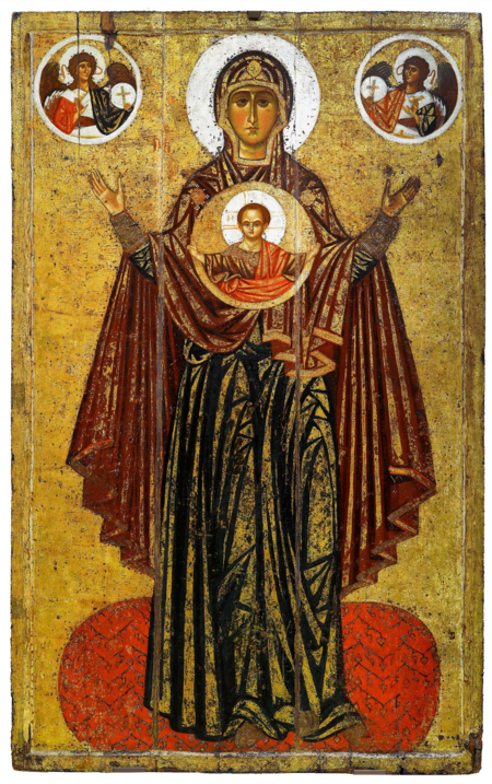 «Знамение» — это часть иконографии «Оранты», на котором изображен Эммануил (Младенец Христос).