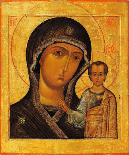 Казанская икона Божией Матери (список), Казань (1579 г.?); Икона Божией Матери «Одигитрия», Византия (Первая четверть XV века)
