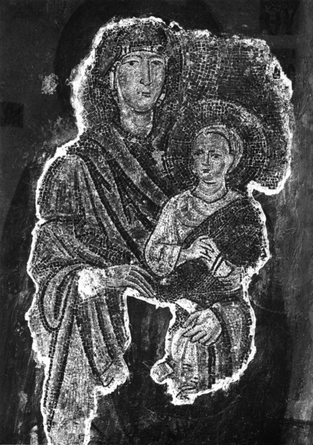 Мозаика Богоматерь с Младенцем, Церковь Успения, Изник (Никея), Турция (X в.); Фреска Богоматерь Аракиотисса, Церковь Панагия Аракиотисса, Кипр (1192 г.)