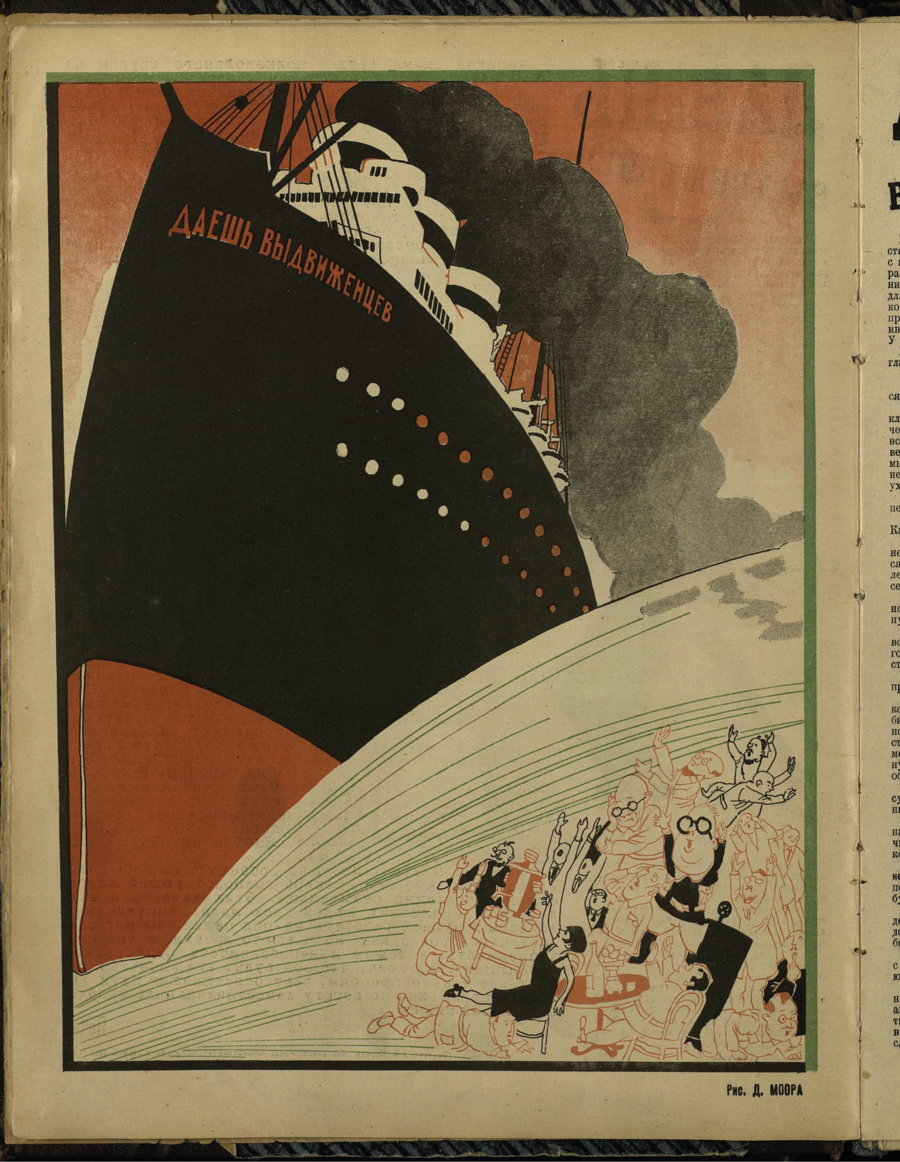 Яркие, интересно оформленные иллюстрированные обложки работы Д. Моора, А. Дейнеки, который также делали иллюстрации на разворотах.