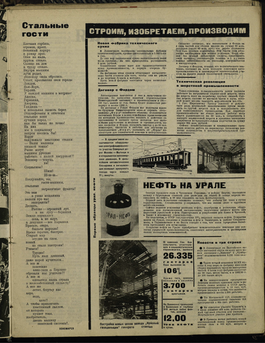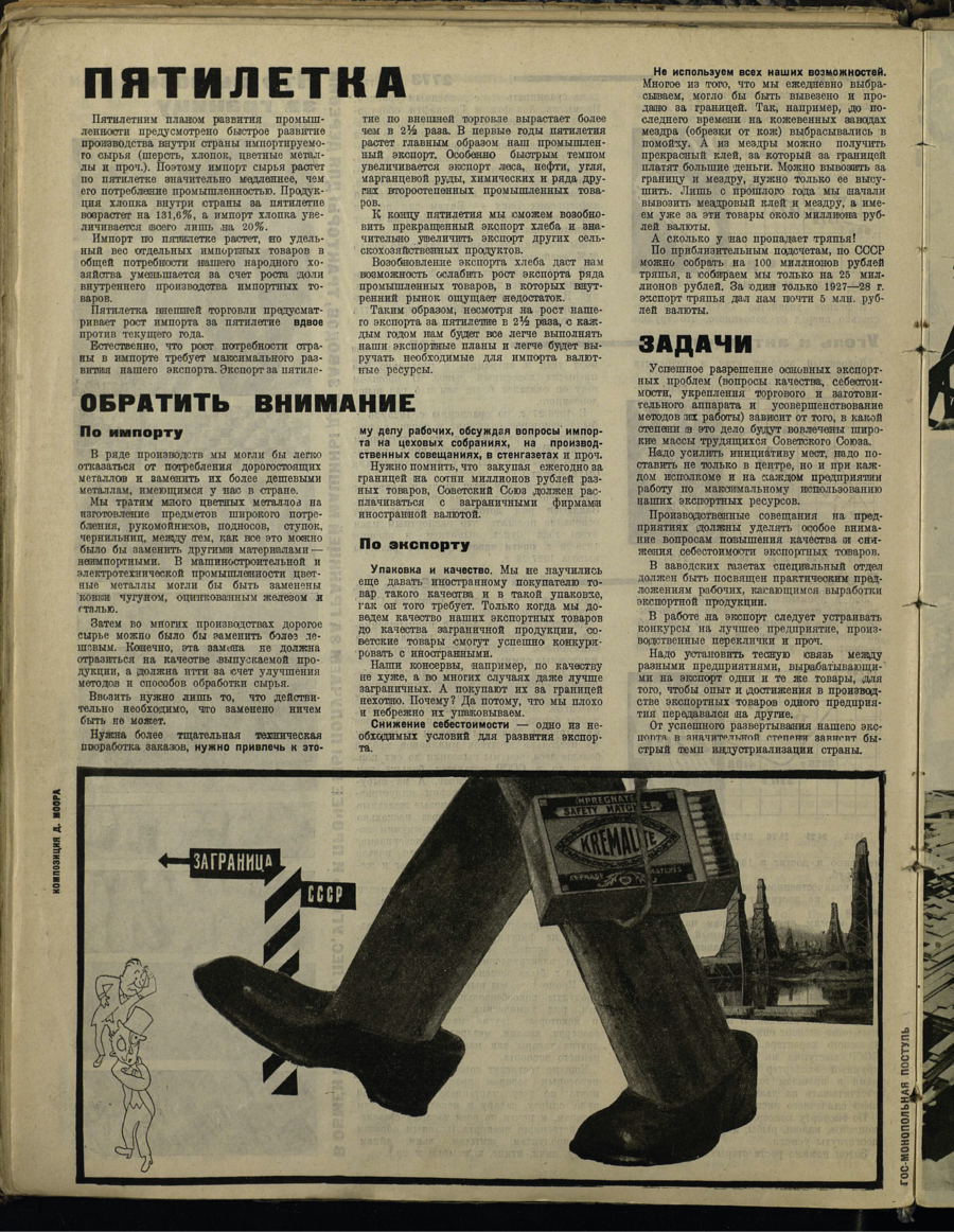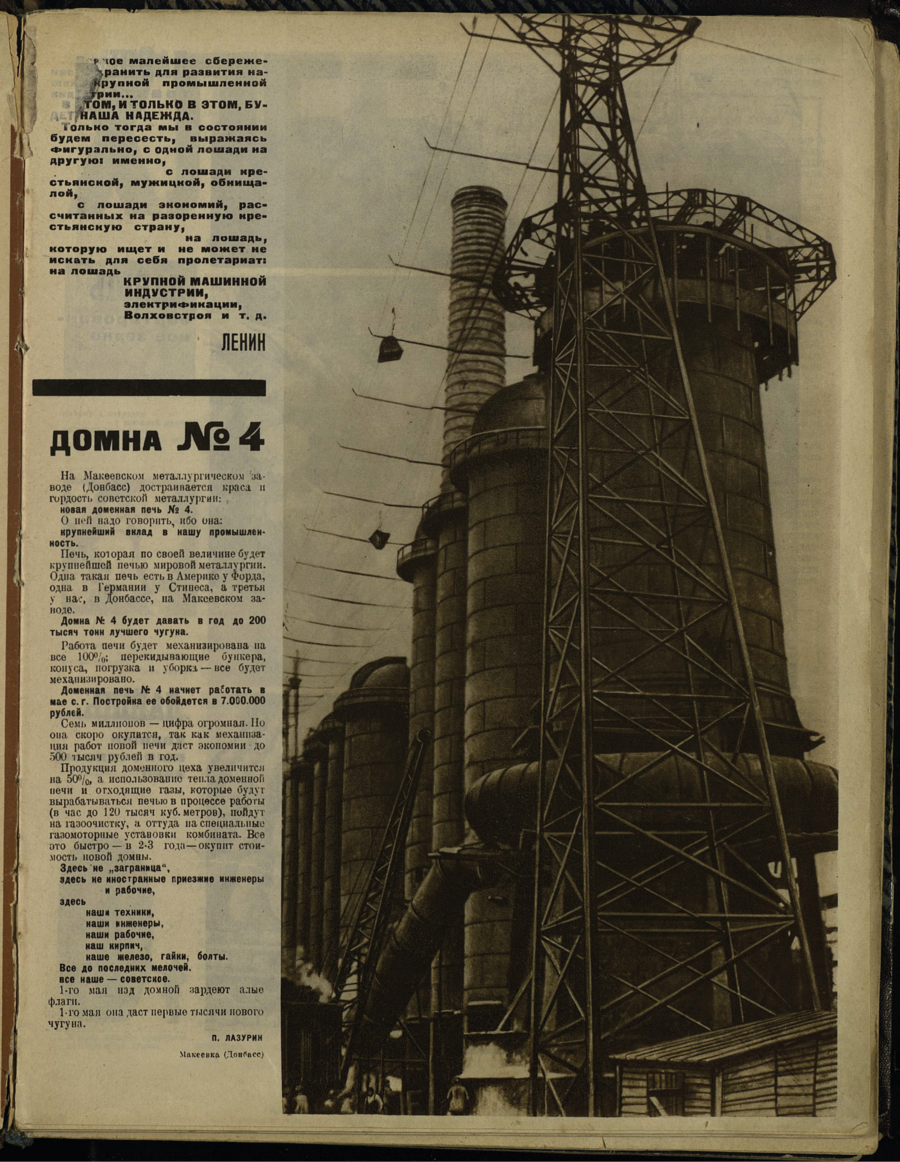 В. Маяковский печатал свои лозунги в этом выпуске журнала, они вошли в композицию фотоочерков «Производственная хватка» и «Урал-нефть».