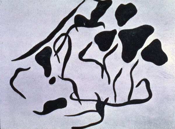 В работах «Автоматический рисунок» и «Форма земного леса» эта логика продолжена, но уже на уровне линий и силуэтов. Арп отказывается от привычной иллюстративности, позволяя элементам накапливаться и взаимодействовать по своим внутренним ритмам. Линии и контуры движутся по поверхности листа, сталкиваются, переплетаются и образуют структуры, которые можно назвать самостоятельными.