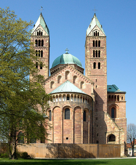 Собор в Шпейере — пример романской архитектуры. Мощные стены, простые геометрические формы и относительно небольшие окна. Это не устремленность ввысь, а прочное стояние на земле.