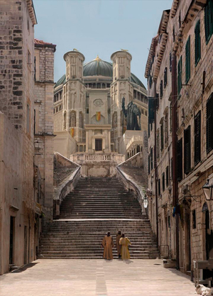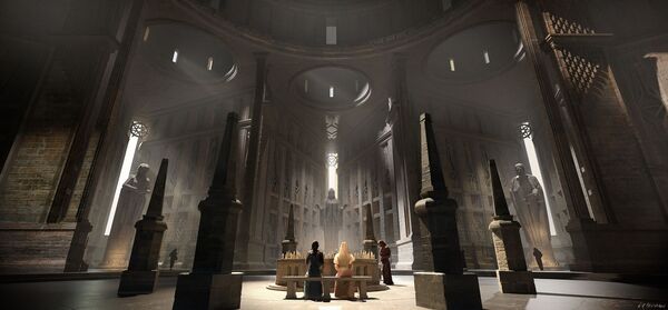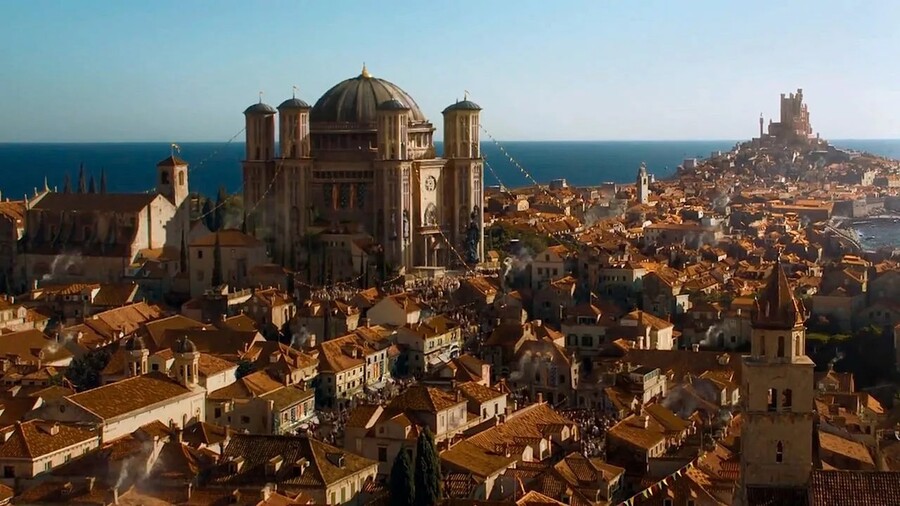 Великое Септа Бейлора (Королевская Гавань) — Поздняя Готика как символ власти и лицемерия. Септа — это практически идеальная реконструкция позднеготического собора. Огромные витражи, сложная ажурная резьба, ощущение простора и света. Реализм сериала требовал узнаваемой и богатой эстетики. Септа олицетворяет могущественную и богатую Религию Семерых. Ее готическая архитектура говорит о претензии на духовную высоту, утонченность и влияние. Однако сюжет раскрывает лицемерие, коррупцию и жестокость, скрывающиеся за этим прекрасным фасадом. Таким образом, готика здесь работает на контрасте: возвышенная форма vs. порочное содержание.