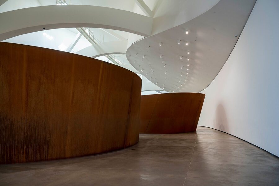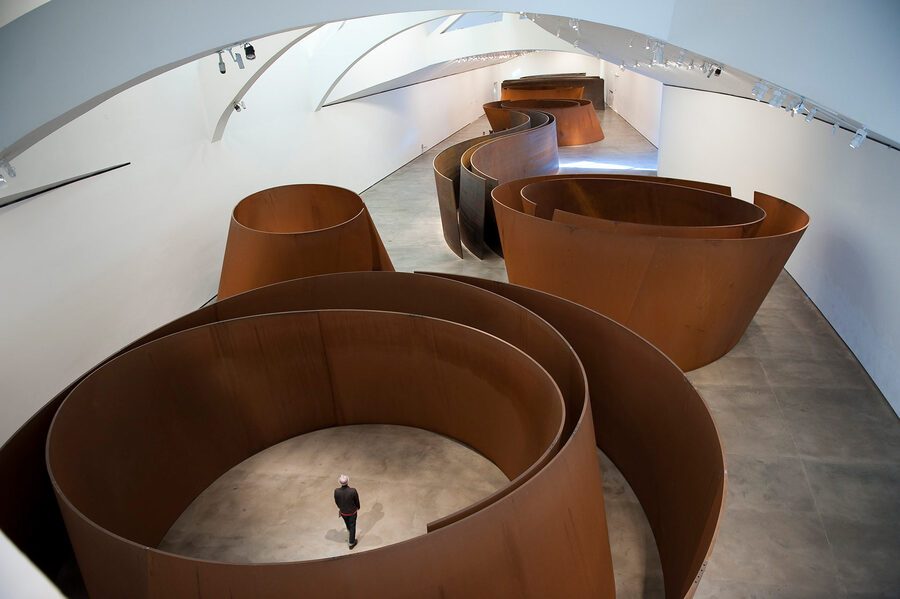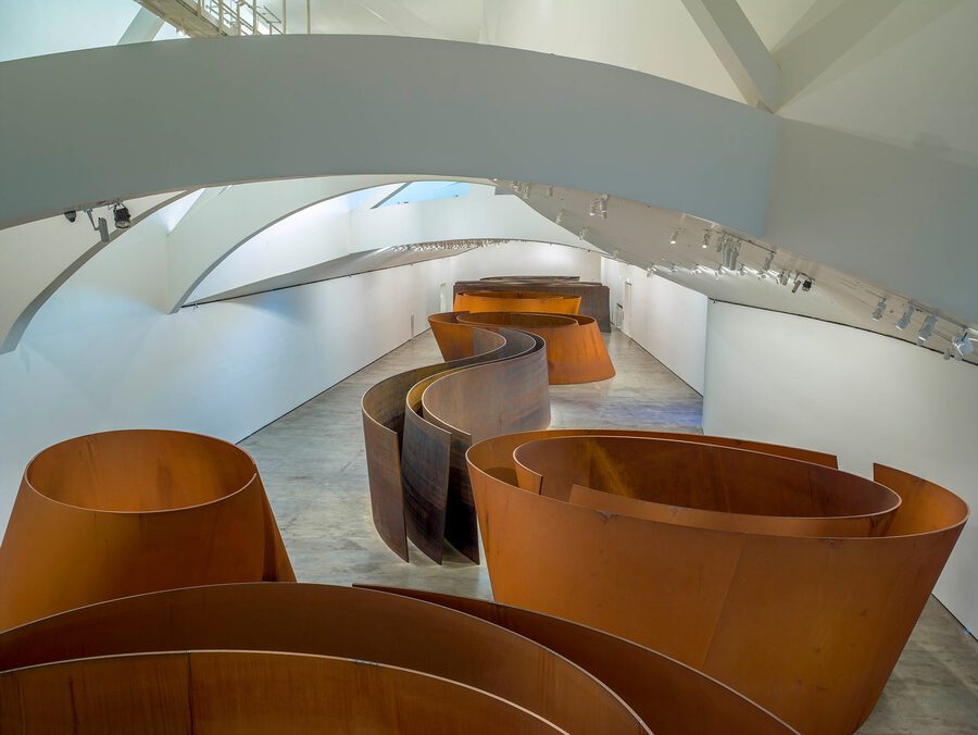 Ричард Серра использует гигантские, изогнутые стальные листы, создавая скульптуры, которые зритель должен обходить и проходить насквозь (например, инсталляция «Вопрос времени» (The Matter of Time) в музее Гуггенхайма в Бильбао).