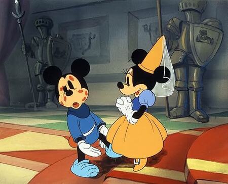 В «The Brave Little Tailor» Микки уже предстает перед нами в качестве героя, который спасает принцессу и побеждает великана.