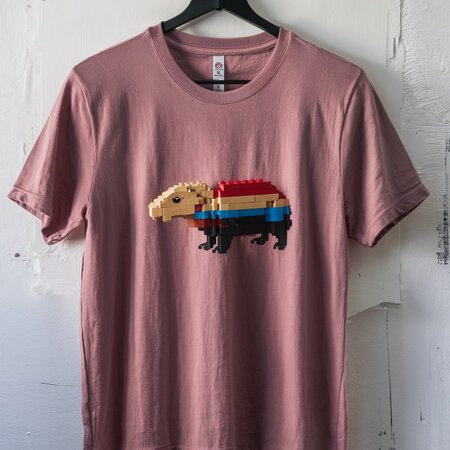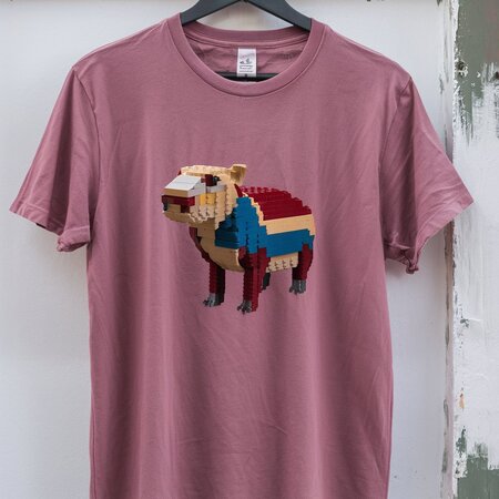 a T-shirt with a lego capybara print on it