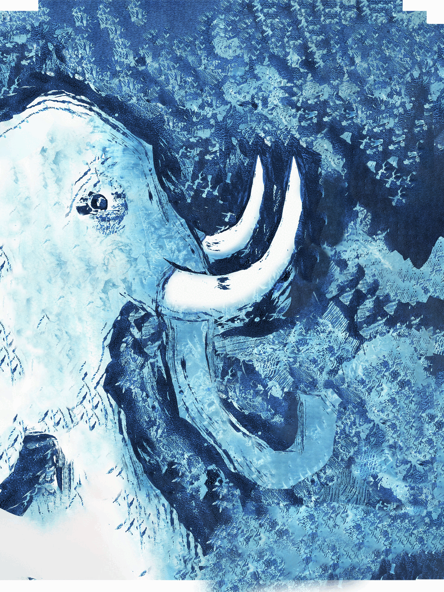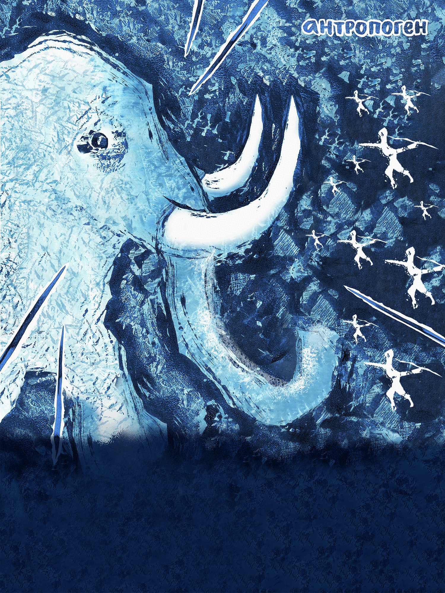Используя различные эффекты и техники наложения и коллажа в Photoshop, я пришла к первому отредактированному наброску мамонта для иллюстрации месяца Января (Антропогена)