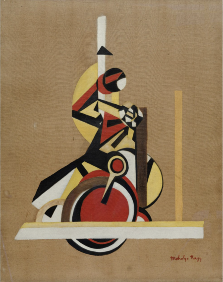У Мохой-Надя — «Велосипедистка» построена на строгой геометрической основе: круг, прямоугольник, треугольник: всё взвешено, даже если кажется хаотичным. Нет движения вне композиции, то есть всё движение внутри, как часть системы. Здесь есть анализ формы и движения. Форма представляет собой результат эксперимента с плоскостью.