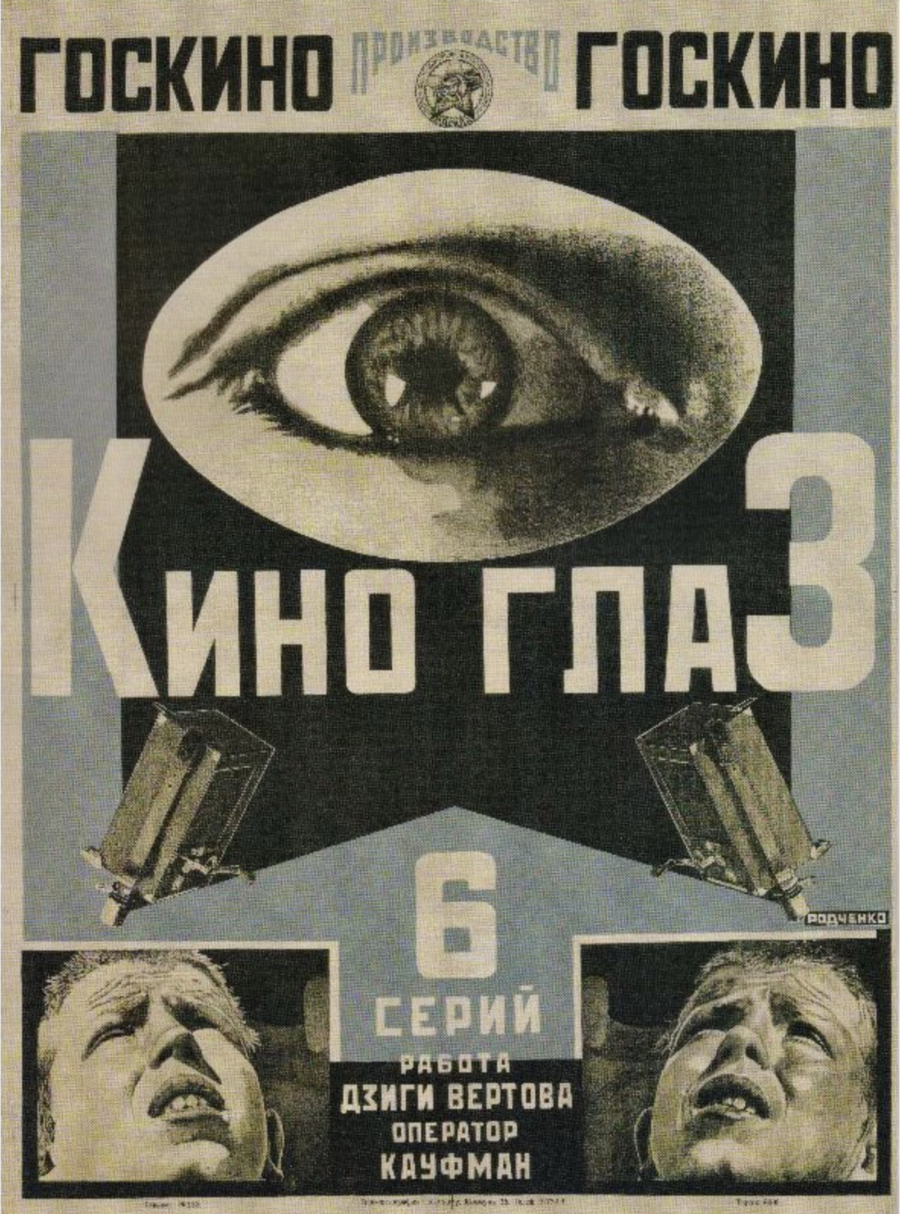 У Родченко слово «ГЛАЗ» — огромное, белое, перекрывает фото глаза. Оно не вписывается, а нарушает: буква «З» выходит за границу, создавая эффект прорыва. Типографика здесь выполняет функцию метафоры: кино как орган зрения, как воздействие.