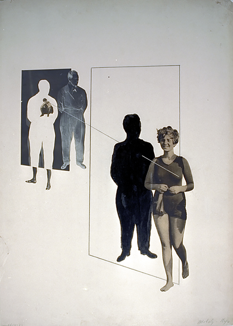 У Мохой-Надя композиция выражает идеологию нового восприятия — ключевой принцип Баухауса: человек должен научиться видеть мир не как набор предметов, а как систему связей. Силуэты, фото, линии показывают, как тело, пространство и свет могут быть переосмыслены. Нет героя, нет цели, нет призыва, но есть позиция, то есть мир открыт для эксперимента, а художник это исследователь. Композиция здесь как модель нового отношения к реальности.