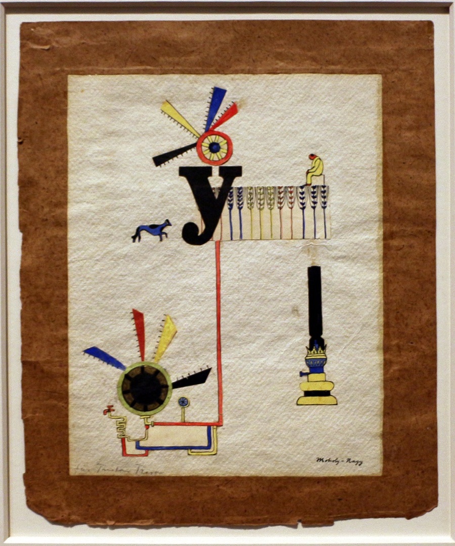 У Мохой-Надя работа «Я» выражает идеологию индивидуального сознания как объекта исследования: буква «y» это центр композиции, а вокруг неё остальные фрагменты: человек на башне, колесо, пшеница, лошадь, и всё собрано в абстрактную систему, где нет логики действия, но есть логика чувств.