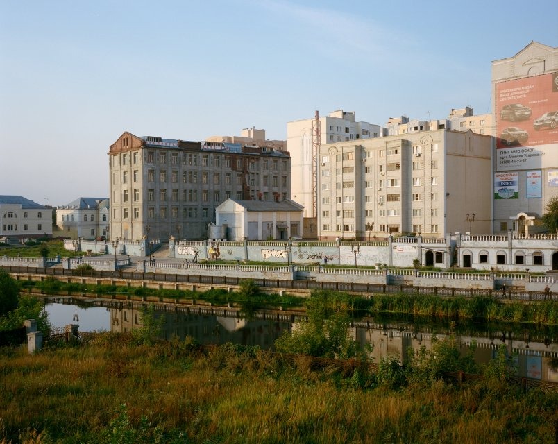 Если смотреть справа с моста, я вижу небольшую частную территорию, огороженную бетонным и металлическим заборами с колючей проволокой. Там таится прикрытое судно. На горизонте мне открывается сине-красный оптовый склад — торговый дом «Экокультура».