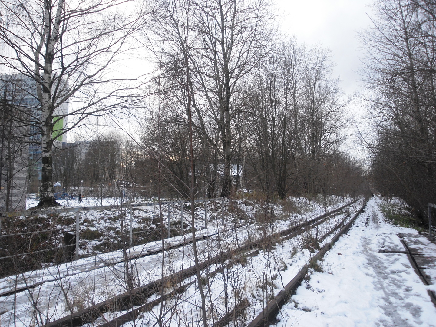 Поднявшись по небольшому склону, по которому маленькая девочка скатилась на ледянке, я встречаю заброшенный ж/д путь.