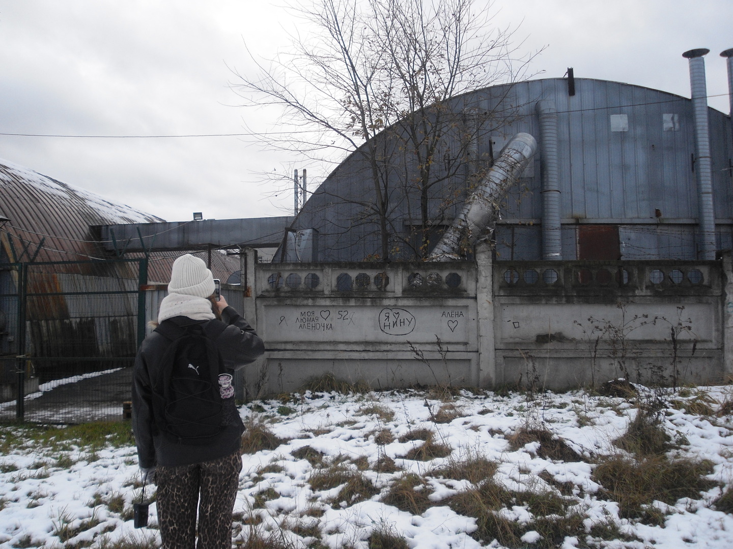 Обернувшись в сторону ЖК «ЗимаЛето», я увидела обветшавшие деревья и железобетонный забор ПО-2, разрисованный граффити. По состоянию этих стен я сделала вывод, что этот граффити-спот не слишком популярен среди райтеров, так как большинство рисунков старые и зачеркнутые.