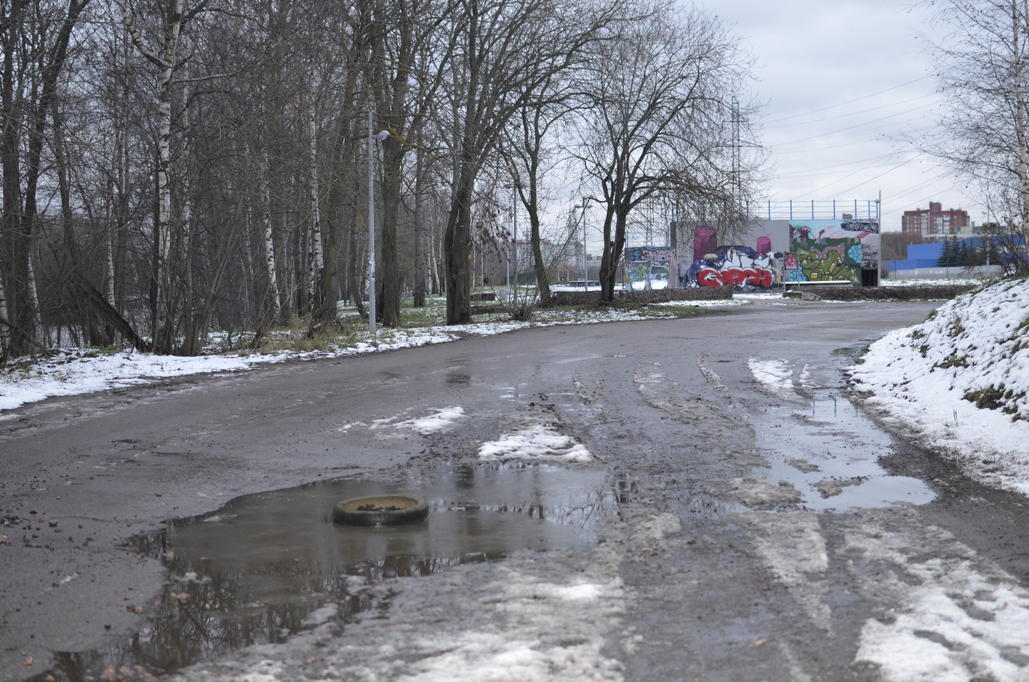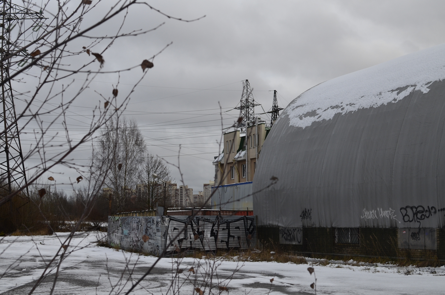 Пройдя ещё немного, воздуха будто стало больше, передо мной раскрылись просторы, ведущие к Ладожскому парку и ледовой арене. Учитывая, что эта прогулка посвящена изучению пространства, лишенного конкретного места расположения и подразумевающего невидимый маршрут, я решила завершить путь, не доходя до Ладожского парка, а именно рядом с задней частью синего супермаркета Metro.
