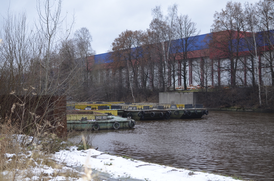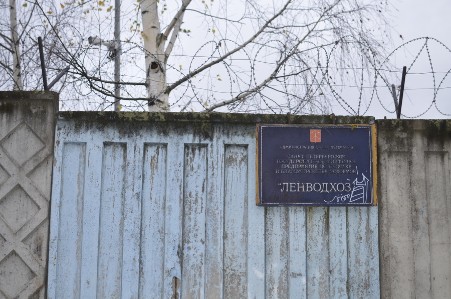 Слева расположено учреждение ЛЕНВОДХОЗ, отвечающее за поддержание безопасности гидротехнических сооружений, включая дамбы, водосливы и водные пути.