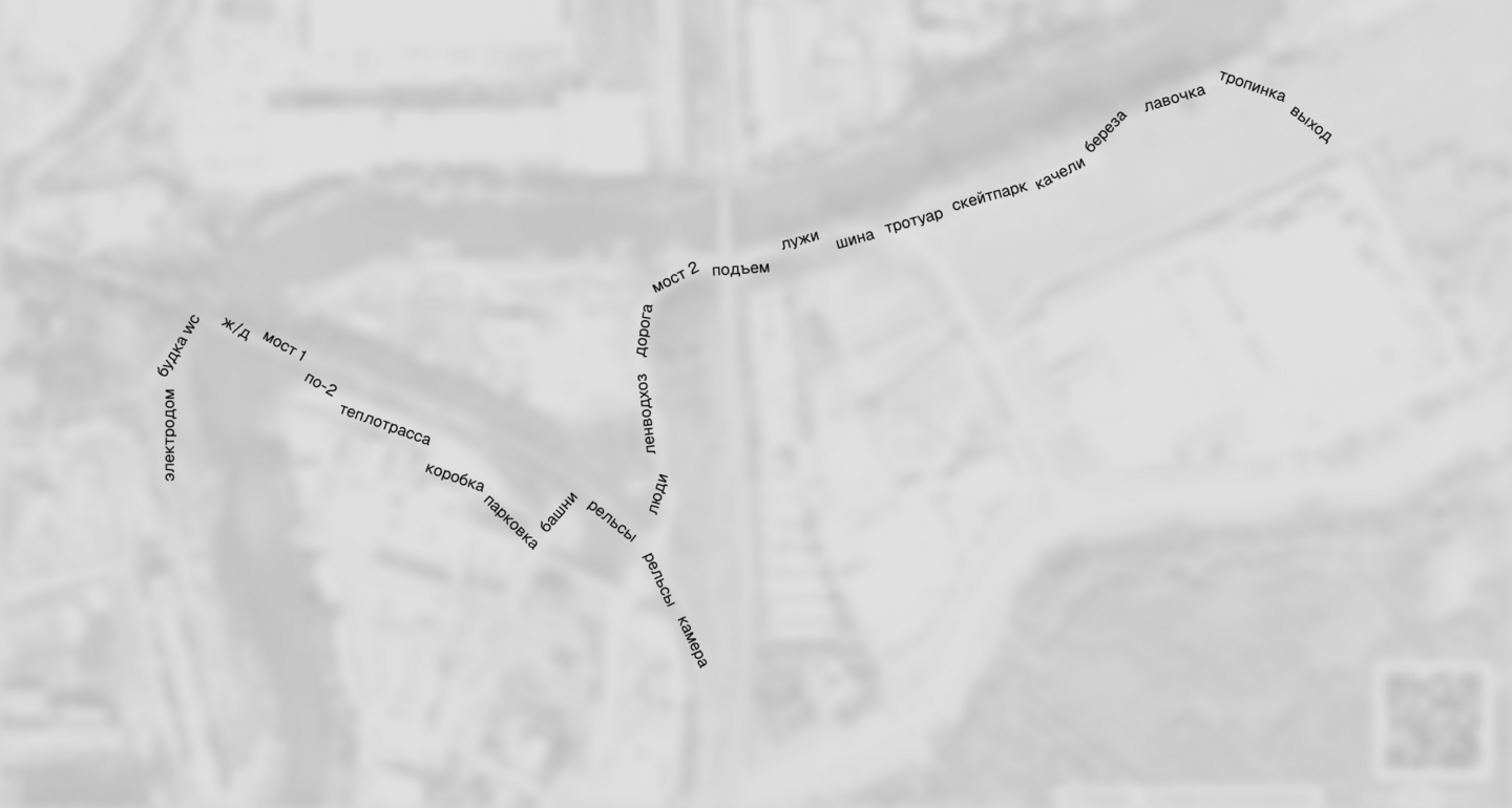 Моё тело, двигаясь по заброшенным рельсам, ощущая под ногами щели моста, поднимаясь по склону, реагируя на шум поездов и запахи, не просто передвигалось, а активно формировало смысл этих мест.