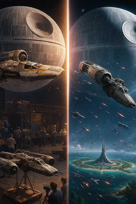 В этом и заключается главный эффект смены технологий: зритель получает более зрелищный, бесконечно гибкий космический бой, но дистанция между экранной материей и реальным объектом увеличивается, а «осязаемость» мира из физического факта превращается в тщательно сконструированную иллюзию.