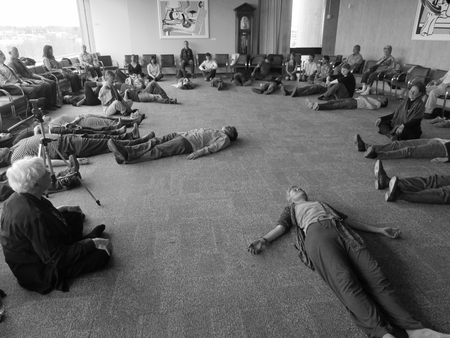 Пример медитации Оливерос: 1. Закрыть глаза 2. Сесть в удобной позе 3. Сосредоточиться на своём дыхании (1-2минуты) 4. Открыть внимание к звукам 5. Замечать, как звуки меняют состояние сознания 6. Оставаться в этом состоянии 15-30 минут 7. Медленно возвращаться к обычному состоянию 8. Рефлексия: что произошло?