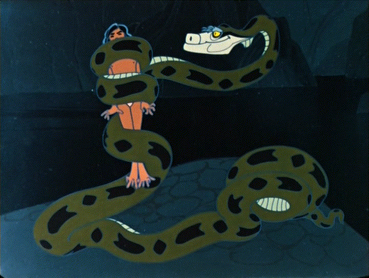 Первая встреча со смертью происходит в эпизоде «Похищение», когда Каа своей жуткой dance macabre гипнотизирует бандар-логов. Те с ужасом смотрят прямо в глаза своей смерти, не в силах отвести взгляд. Балу и Багира уводят Маугли, говоря, что ему не годится видеть то, что сейчас здесь будет, хотя мгновение назад сами были готовы прыгнуть в смертельные объятья Каа.