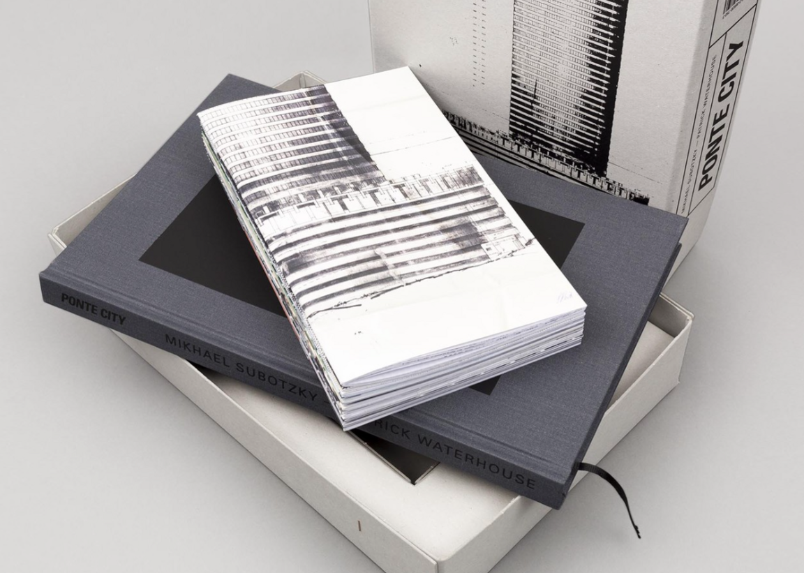 Небоскрёб Понте Сити в Йоханнесбурге — это 54-этажное цилиндрическое здание высотой 173 метра, построенное в 1975 году как символ современного комфорта для белой элиты при апартеиде, оно самое высокое жилое здание в Африке. Его уникальная архитектура с пустой центральной частью позволяла свету проникать во все квартиры. После ухода белых жителей, построивших здание как проявление своего доминирования, Понте Сити превратился в зону с бедностью и высоким уровнем преступности, населённую в основном темнокожими рабочими и студентами. В фотокниге Суботцкого и Уотерхауса небоскрёб становится метафорой социальных и исторических процессов, где влияние белого меньшинства и борьба темнокожих за своё пространство и идентичность выражены через детали архитектуры и жизни сообщества. Именно люди — жители Понте Сити — придают смысл этому месту, сопротивляясь отчуждению. Также этот архитектурный объект служит метафорой социальных изменений, символизируя переход от белого превосходства к многорасовому сообществу, которое сталкивается с экономическими и социальными вызовами.