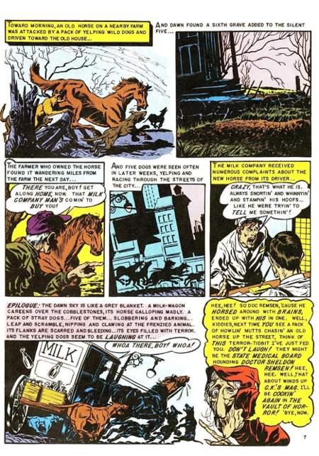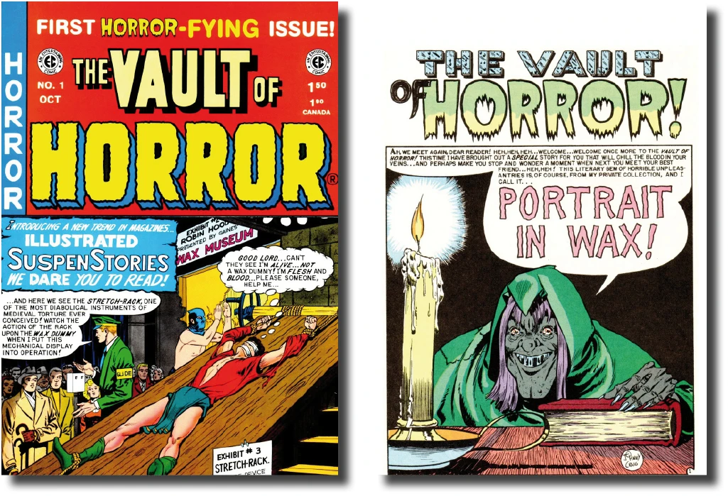 Появление трех ключевых хоррор-серий EC Comics — «Tales from the Crypt», «The Vault of Horror» и «The Haunt of Fear» — стало важным моментом для американской массовой культуры начала 1950-х годов. Эти журналы создали устойчивый формат «хоррор-альманаха», в котором каждая отдельная история представляла собой законченную сатирическую притчу с элементами шоковой морали [4].