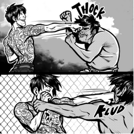 Визуальный язык комиксов также является достаточно выраженным. Во-первых, выделяются аномально вытянутые и раздутые фигуры, сгущенные тени, контрастность. Телесность доведена до предела, видно множество мест гниения, деформации. Акцент делается на выражение лица — страх, алчность, злоба.