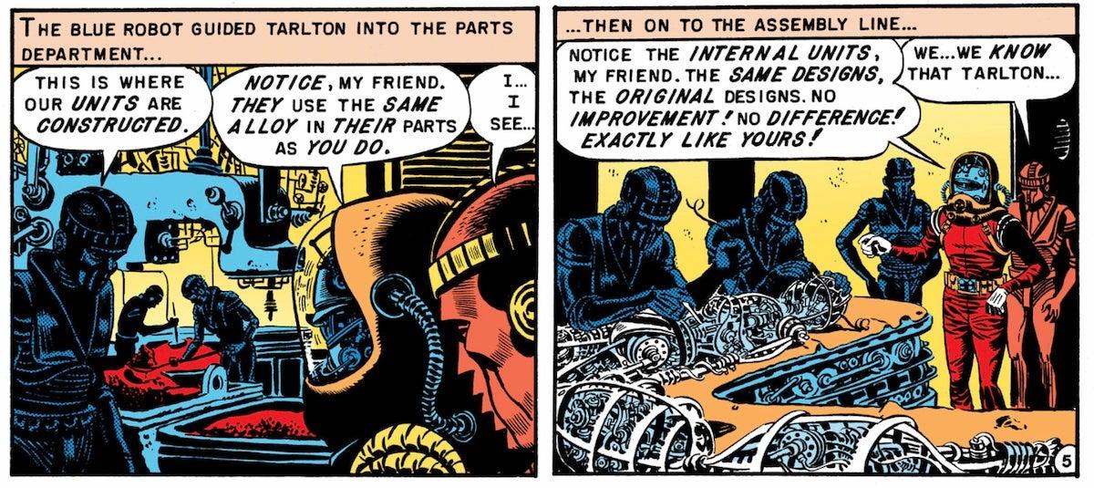 EC Comics работала с этими страхами через метафорические формы. Она представляла в своих комиксах сюжеты о захвате тела паразитами, истории о вторжении из космоса, образы монстров, которые находятся под личиной обычных людей. Все это компания использовала для активной критики нынешнего положения дел через «монстра», который разрушает мир Америки изнутри [3].