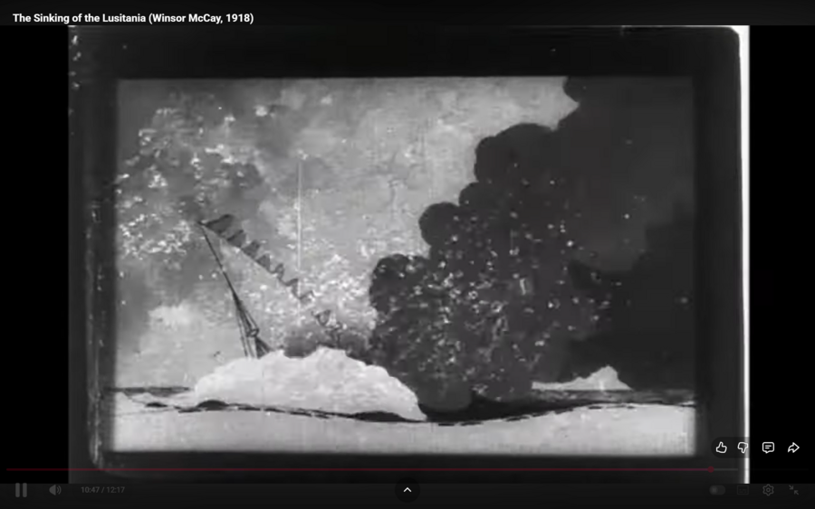 Фильм: The Sinking of the Lusitania («Гибель Луизианы», 1918, реж. Уинзор Маккей) Кадры показывают первое в истории анимадока движение волн.