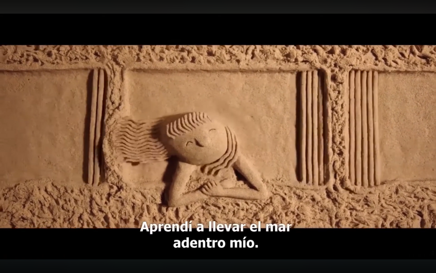 В «Guaxuma» сама техника песочной анимации диктуется образом воды. Океан становится соавтором: на визуальном уровне видна вода, размывающая границы кадра, созданного из песка. Это прямая метафора эрозии памяти. Вода, как активный агент энтропии, демонстрирует, размывая кадры, что каждое воспоминание, как каждый кадр фильма, находится под постоянной угрозой исчезновения и распада материи.