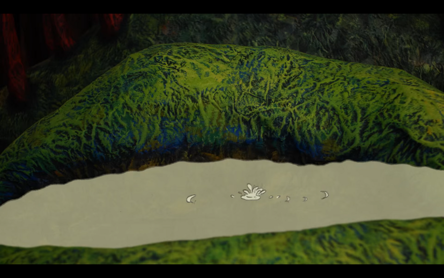 Уникальная техника Баумане — сочетание папье-маше и рисунка — делает воду текстурной и сухой. Приём подчёркивает искусственность депрессивных конструктов: они реальны лишь для больного, но являются всего-то декорацией внутренней драмы. Значит и вода здесь — не природная стихия, а замкнутый цикл мыслей. Материальность анимации позволяет зрителю увидеть всю структуру безумия, из которого героиня пытается вырваться, прочувствовать её страдания.