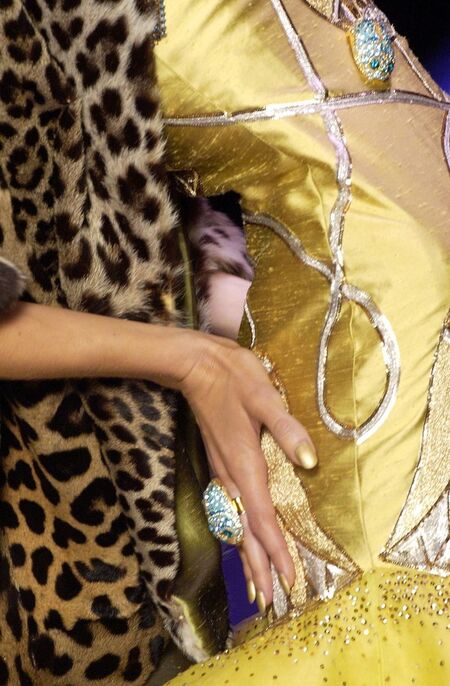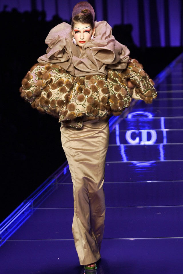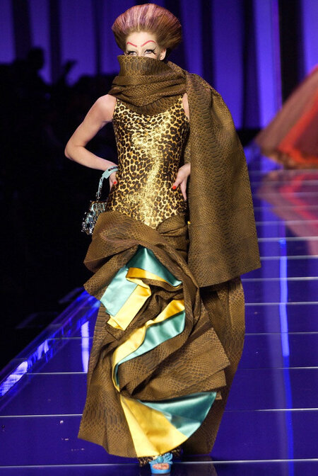 Джон Гальяно грамотно ввел в коллекцию леопардовый принт, который хорошо гармонировал с блеском золота.