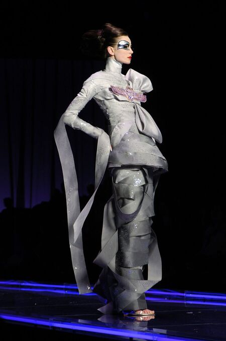 На показе Гальяно мумии превратились в гламурных дам. Модельер раскрыл этот образ в своей привычной манере: добавил к нему стразы, акцентные броши, элементы женственности и роскоши. Таким образом, мумия Гальяно превратилась в нечто новое, отличающееся от традиционного представления.