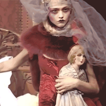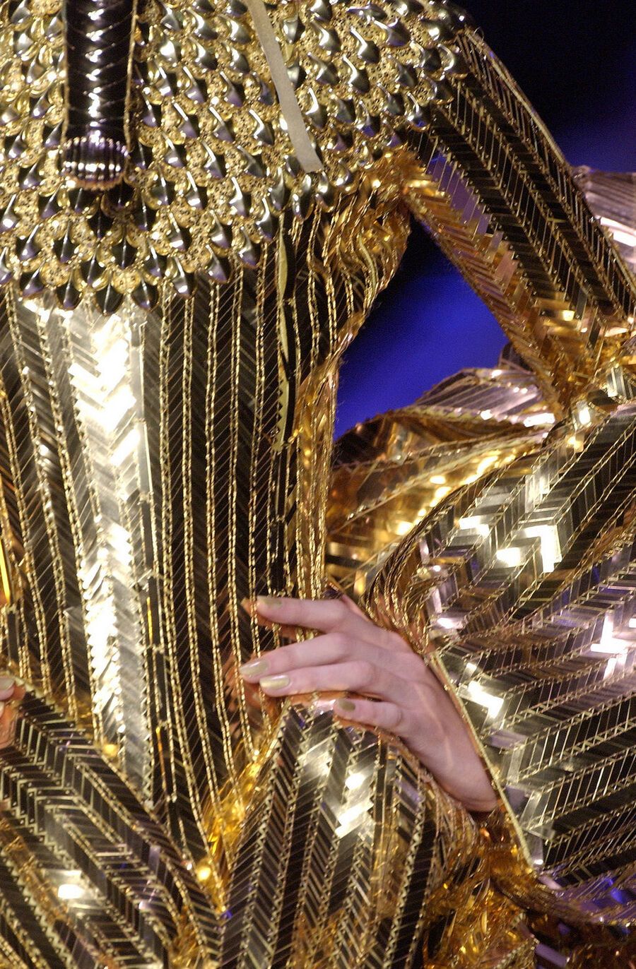 На показе были представлены образы отсылающие к мумиям. Модели шли в роскошных вечерних платьях, напоминающих бинты, которые использовали для бальзамирования.
