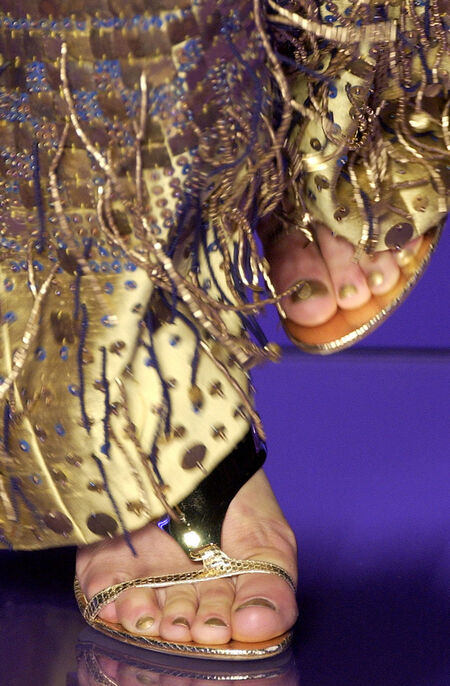 Ноги многих моделей были выкрашены в золотой цвет, что визуально может напомнить золотые напалечники египтян.