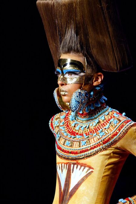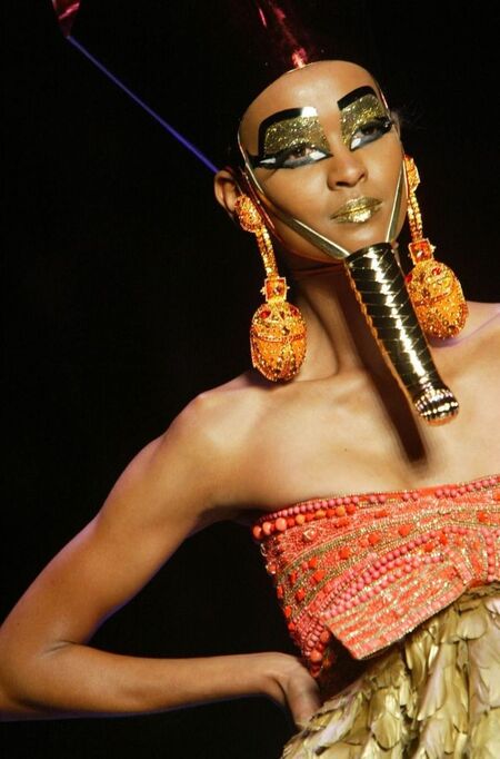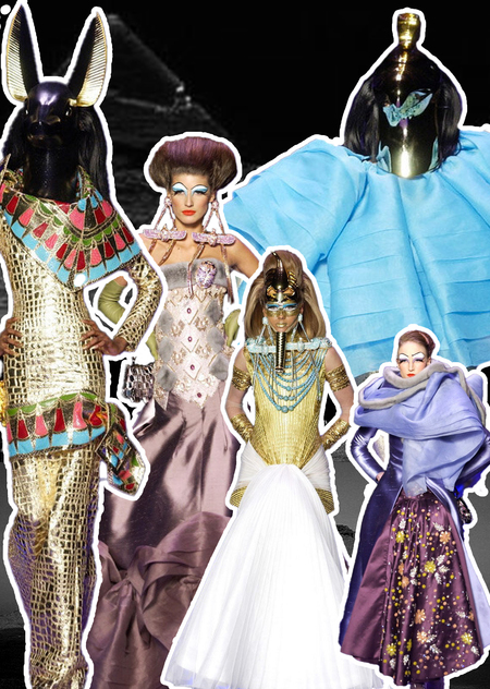 Современные фэшн-дизайнеры часто обращаются к древнеегипетской культуре. Выделяют даже отдельный феномен «египтомании» в моде — увлечение древнеегипетской эстетикой, которое, как следствие, создаёт новое представление об этой исторической эпохе. Богатства гробниц, образы древних богов, уникальные архитектурные сооружения и объекты живописи — всё это когда-то вдохновило на создание культовых коллекций таких модельеров, как Рикардо Тиши, Карл Лагерфельд, Александр Маккуин и, конечно, Джон Гальяно.