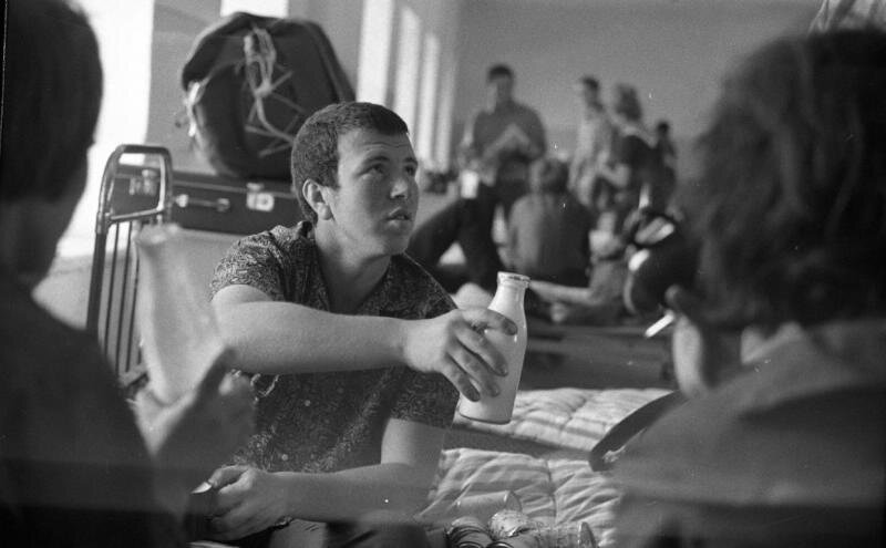 Источник: «Общежития в СССР: жизнь студентов и простых рабочих» — МАММ / МДФ. В общежитии студентов стройотряда МГУ. Студенты стройотряда МГУ в общежитии. 1967 год.
