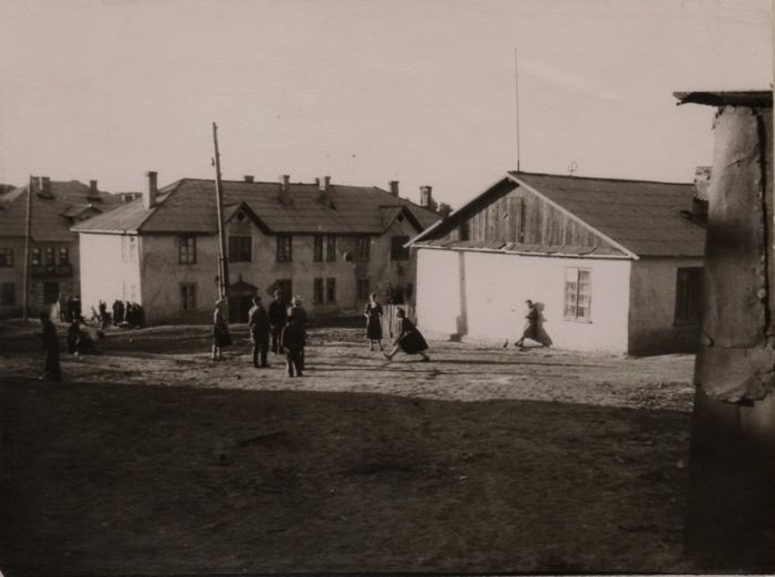 Источник: «Жизнь послевоенных бараков в Москве» — блог «Московские истории». Беговая улица. Дата на обороте фотографии: «Октябрь 1941 год». Фото: А. В. Устинов.