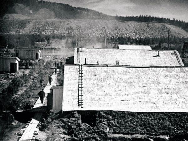 Источник: МАММ / МДФ + Яндекс. Жилые бараки трудармейцев. (слева) Лагерь трудармейцев. Жилой барак. (справа) 1944–1946 гг.