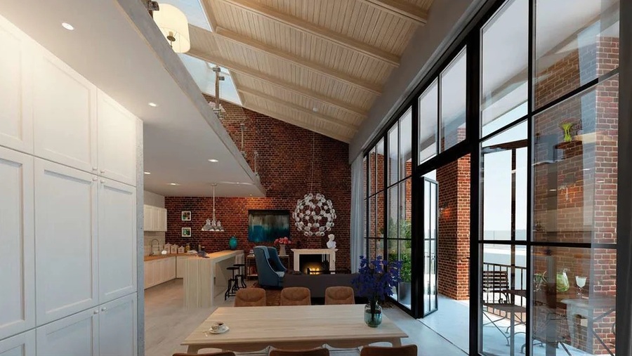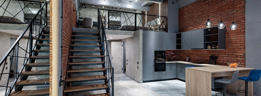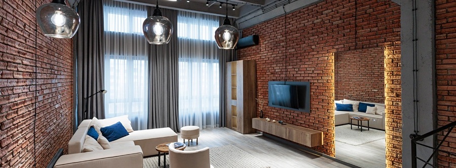 Главная особенность современных лофтов заключается в том, что индустриальные элементы больше не воспринимаются как данность, а становятся частью дизайнерской стратегии. Обнажённый кирпич, металлические колонны, широкие оконные проёмы — всё это тщательно интегрируется в интерьер, усиливается подсветкой, подчёркивается отделочными решениями.