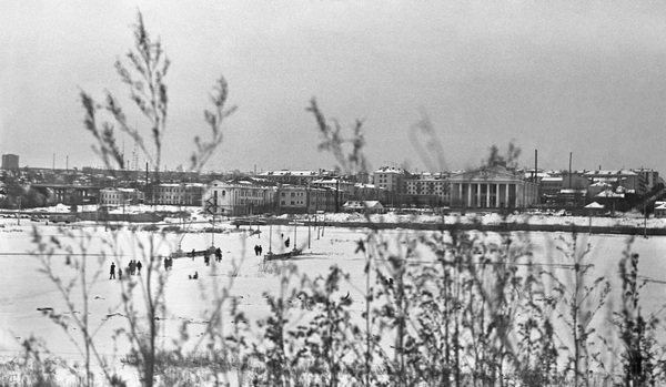 Панорама театра и набережной с кучи песка, 28 октября 1982