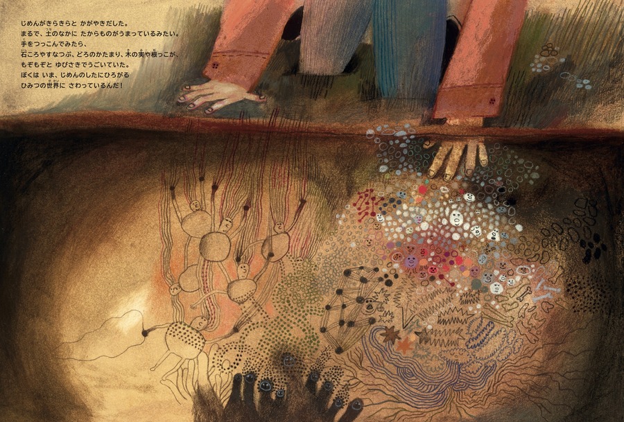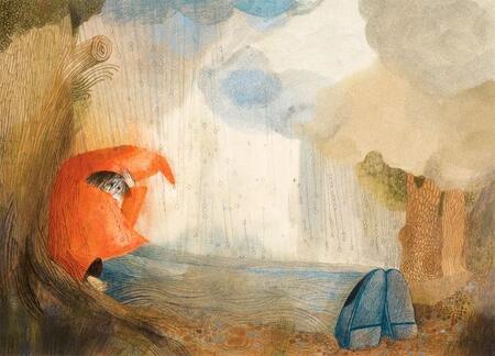 Пустое пространство играет огромную роль. Оно может быть белым, блекло окрашенным, слегка текстурированным. Пустота — это воздух, одиночество, свобода, пауза. Она даёт глазу и читателю пространство для дыхания. На представленной выше странице маленький и суетливый ребенок противопоставлен огромному пространству вечного и мудрого леса