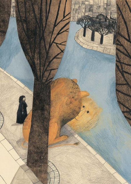Вообще, книга «Лев в Париже» интересна больше всего тем, что какая бы ни была композиция, пусть даже самая интересная и замороченная, лев никогда не уходит на второй план, и дело не только в том что он самый большой и яркий, дело в том какой он получается живой и потерянный на фоне всего остального. Так и хочется его приютить